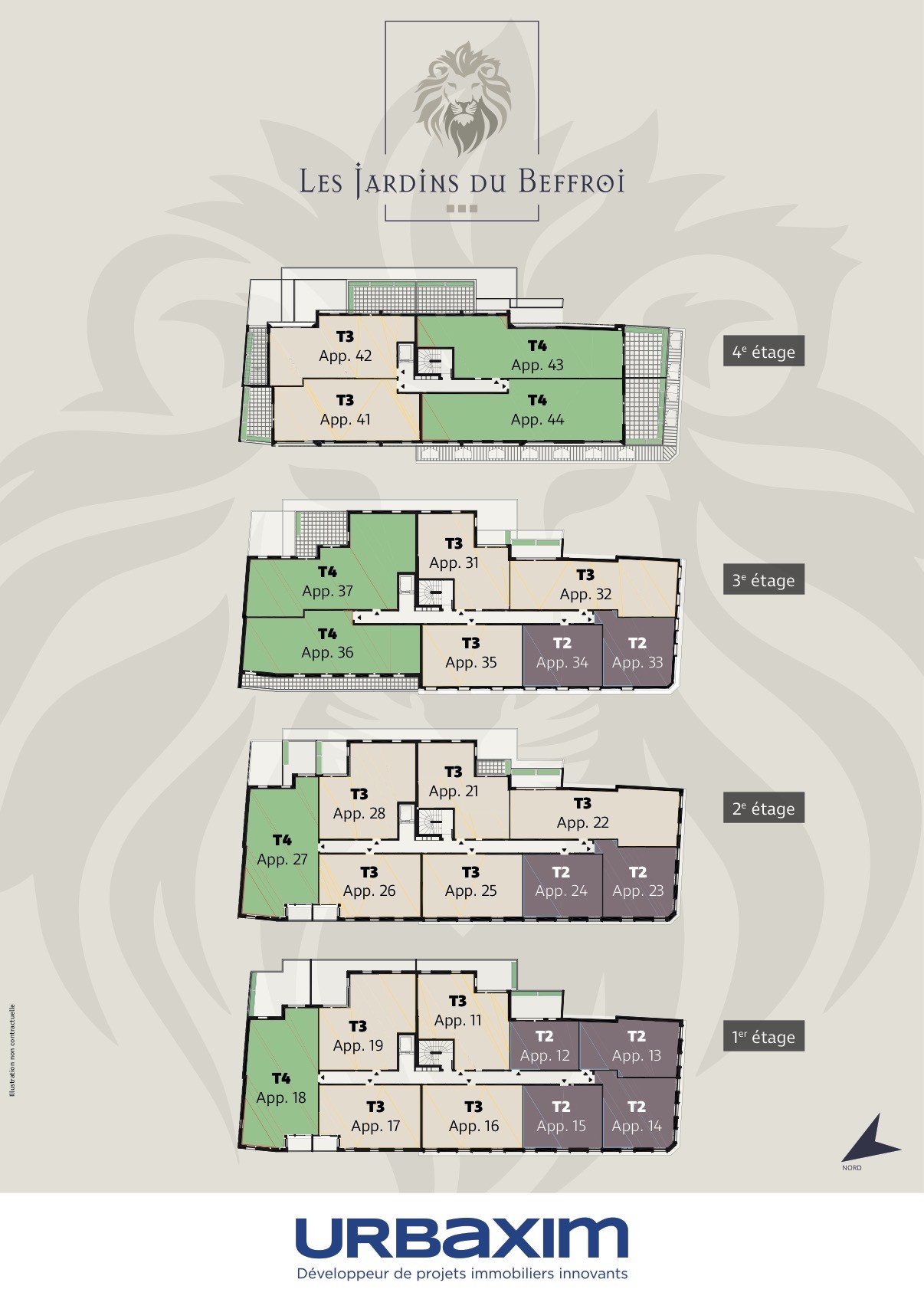 la résidence Les Jardins du Beffroi se compose de 29 appartements du T2 au T4, tous pensés pour offrir luminosité, confort et bien-être au quotidien.